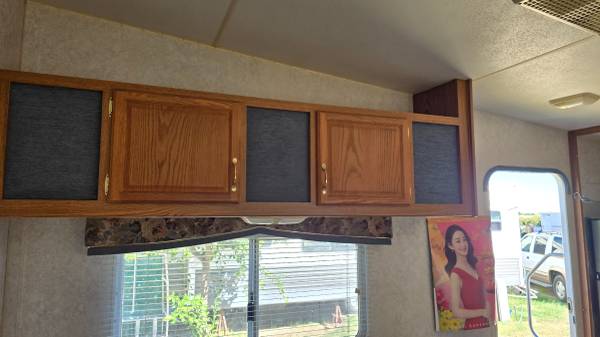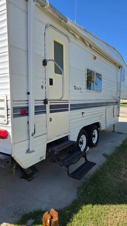 Clean Terry trailer by Fleetwood in RV park, everything in ⁶working order. shower, toilet AC all working good. Ready for new owners. have title in hand. good tires. extra storage box. UWS Diamond box will sell for $600 sold separately. Not included with trailer sale. 29feet from rear to hitch. Can deliver for a fee. will need a awning cover. cost for one is about $140