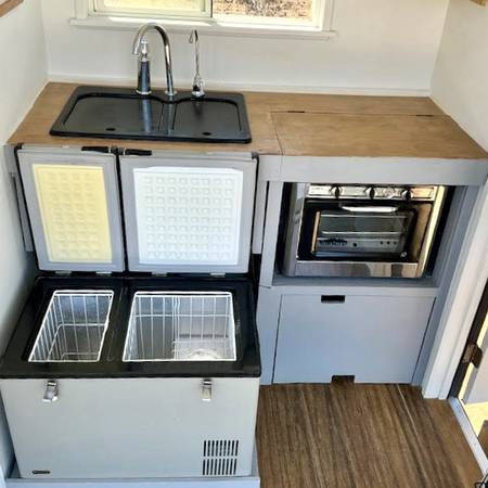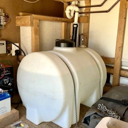35 gallons fresh water tank and 10 gallon gray water tank. Copper plumbing. Water filtration system.